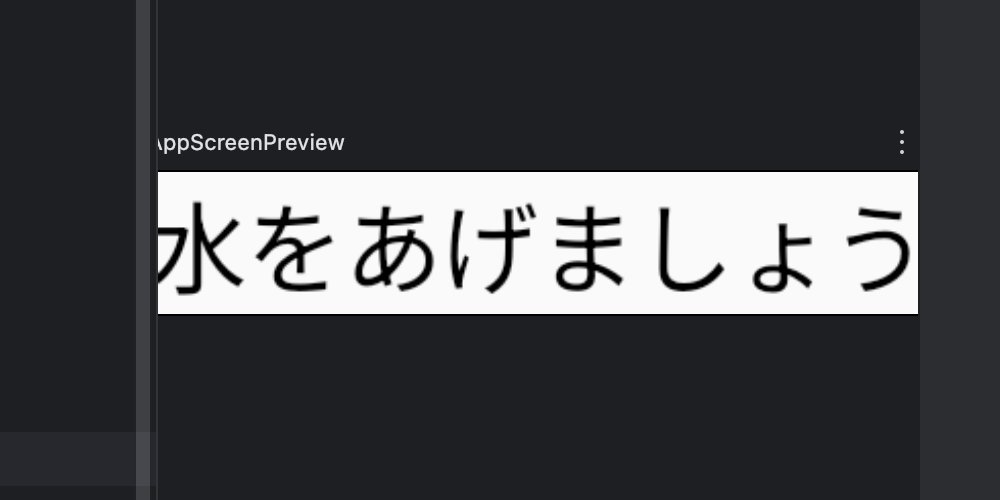 ここでは文字サイズを指定する fontSize パラメータも書きました。XML では、文字サイズは 18sp と書いていましたが、Jetpack Compose では 18.sp となることに注意です。